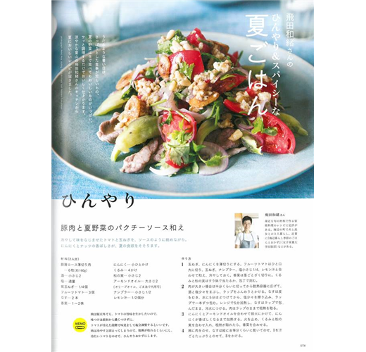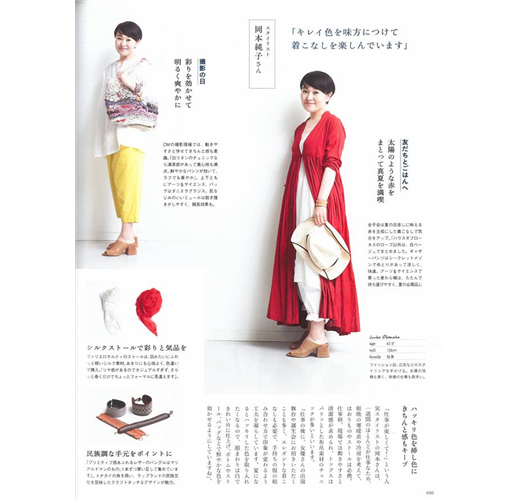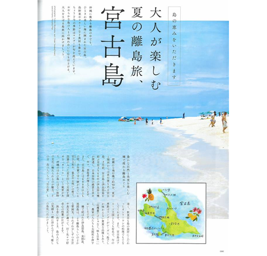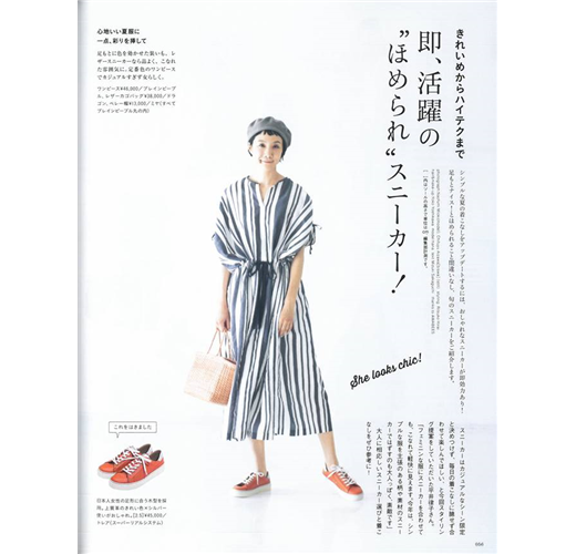 封面人物請到今年出道滿35週年的「原田知世」,聊聊一路走來的點滴和工作近況,另由時尚品牌店主、名造型師、插畫家;示範連續一週、因應不同場合提案的全身造型。接著精選多雙夏季注目運動鞋款,還有知名料理家飛田和緒帶來多道爽口開胃的夏日食譜,以及那霸出發搭乘飛機只需50分鐘就能抵達的宮古島之旅。