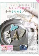 以施華洛世奇水晶和高雅白色珍珠製作的美麗胸針、利用餘布重疊縫製成荷葉花邊聖誕樹和蕾絲緞帶燭臺、聖誕老人造型月曆;卷頭提案多件聖誕裝飾佈置,另介紹用再生線材「Zpagetti」和棉麻布、超粗毛線為材料的時尚髮帶,還有一張型紙多用途的基本活用法和療癒系小熊&貓熊玩偶裁縫教學。隨刊附贈北歐風獨家設計花布、實物尺寸型紙&圖案。