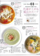 為讓大家也能夠輕鬆打造本季流行的自然風底妝,在這除了要介紹打造自然風底妝所不可缺少的人氣保養與彩妝品之外,還要教大家打造自然風底妝的彩妝技巧。另外,隨著年齡增長,體型也開始變化,為了想要打造完美身材的你,本期特別邀請到個領域的專家們來教大家如何透過簡單的體操、按摩以及提升代謝的魔法熱湯來輕鬆塑身。
