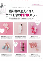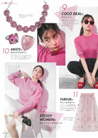 「snidel」粉色夾克、「DIESEL」桃粉短T、「COCO DEAL」金蔥針織上衣;單元首先由時尚團隊從人氣品牌嚴選出31件不可錯過的粉紅新品,接著由模特兒栞里示範連續20天、每天都將粉紅色穿在身上的重複穿搭。另公開造型師嚴選,送禮自用兩相宜的粉紅色贈禮清單,還有人氣彩妝師笹本恭平提案、可愛時髦充滿夏日氣氛的眼妝。