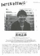 與搞笑藝人春日俊彰組成搞笑團體奧黛麗的若林正恭,在奧黛麗中擔任吐槽角色的若林正恭,不只是以搞笑藝人身分活躍在各領域的他,更以作家身分推出散文集,而本期便要收錄若林正恭的個人專訪。