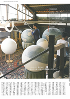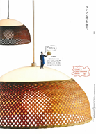 在進入正題之前,讀者不妨先比對一下前面和後面兩個吊燈有何差別。仔細看看它們的顏色,前面是剛完成不久的新品,在它後方的是已經用了近40年、竹子在歲月的洗禮下,呈現出有如純麥威士忌的深邃色澤。竹藝家近藤昭作先生在60年代創作的半月型竹編吊燈,2008年停產後現由25歲的年輕竹藝職人復刻重現。