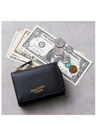 專為成熟女性提案,設計高雅不失童心的女裝品牌「Deuxieme Classe」,附錄獨家合作推出個性時髦的迷你黑色錢包,仿皮材質搭配金色拉鍊和燙金LOGO印字,超越視覺以上的收納容量,輕巧實用又不佔空間。(尺寸:長7×寬10×深3.5cm)