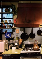 依照自己順手的位置決定廚房道具的吊掛位置,除了可以讓料理流程更順暢方便,也有通風、不易潮濕的優點。而各種道具的吊掛收納,也使得這間廚房看起來特別熱鬧。