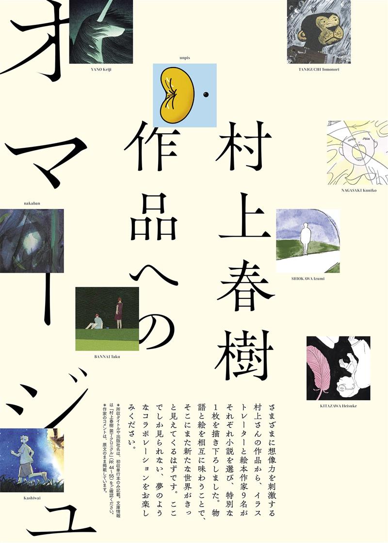 そのほか、翻訳を除く全著作(単行本)を紹介する「村上春樹 装丁クロニクル」や、イラストレーター・絵本作家9名が村上さんの小説をテーマに作品を描き下ろした「村上春樹作品へのオマージュ」など、見どころいっぱいです。