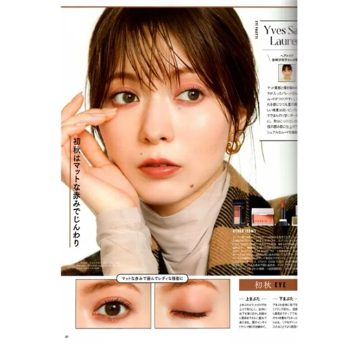 秋季色彩常給人比較濃豔的印象,但彩妝師中野明海和模特兒持甜美優攜手實現流行秋色的純真妝容,發現美麗的新鮮可能性。
