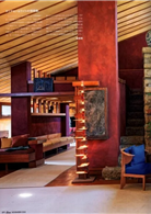 位在美國威斯康辛州的塔里耶森是萊特的事務所兼住宅,強調水平方向的建築線條反映了萊特著名的草原風格,柱子、牆壁、壁爐採用當地採石場的石材,不規則地堆疊出宛如地層的美麗效果。
