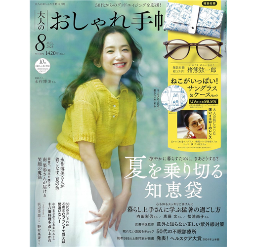 大人のおしゃれ手帖(2024.08)表紙:永作博美( 附太陽眼鏡&豬熊弦一郎畫作貓咪們眼鏡盒)