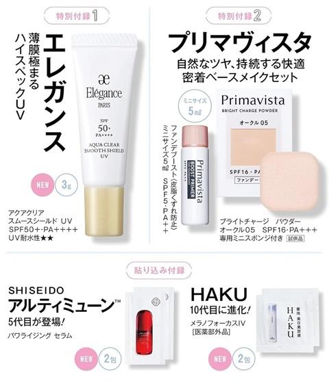附加商品說明:紫外線逐漸變強的春夏季節一定要好好防曬,本期除了要附上SPF50+ PA++++的ELEGANCE防曬隔離霜之外,還要附上日本熱銷底妝品牌Primavista底妝試用組。(成分與注意事項請參考外包裝說明)