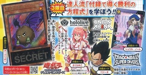 附加商品說明:本期除了要附上遊戲王黑暗栗子球卡片、七龍珠卡片&超時空要塞Frontier卡片以及hololive櫻巫女卡片之外,還要附上收錄「勇者鬥惡龍X Online」的遊戲序號。(使用方法與注意事項請參考外包裝說明)