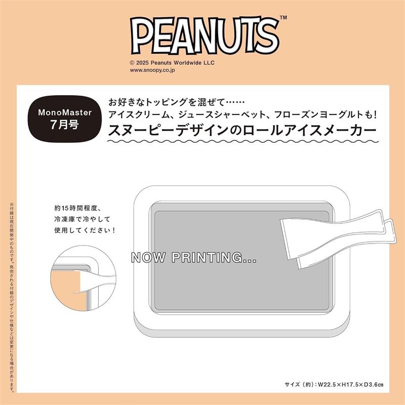附加商品說明:用鏟子將炒好的冰變成捲狀,之後再加入喜歡的堅果或水果就能夠做成近年來最受矚目的炒冰,隨著炎熱夏天即將到來,本期特別要附上不需要插電就可以使用的SNOOPY炒冰盤。(炒冰盤的尺寸約為長17.5×寬22.5×高3.5㎝,鏟子的尺寸約為長14.5×寬5.7㎝,材質為聚丙烯、鋁、矽膠)
