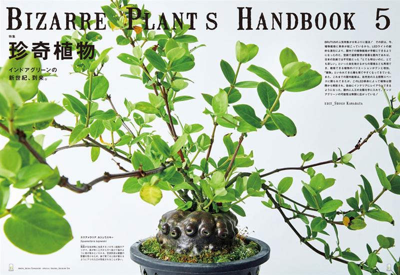 睽違六年,BRUTUS的超人氣主題「珍奇植物特集」再度復活。為什麼珍奇植物是時下的熱門話題呢?因為LED燈的性能出現飛躍性的進化,室內栽培的難度跟著下降,屋內的溫溼度管理相對容易,想重現珍奇植物必備的環境條件變得比較簡單,能種植的選項增加,自然興起一股珍奇植物的栽培風氣。
