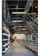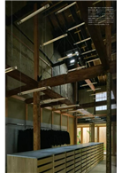 為了改善町家照明不足的印象,活用經年累月的歲月痕跡,MOMOTARO JEANS京都直接秀出現有的木造架構、土牆,拆掉二樓的地板,並懸吊壓克力製的立體格子照明,成功營造獨特個性。