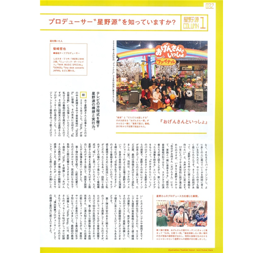 若要談星野源從企劃或架構就開始參與的作品,不能不談NHK的節目「おげんさんといっしょ(暫譯:與源太太一起)」和「星野源のおんがくこうろん(暫譯:星野源的音樂爭論)」。帶來節目製作人的訪問,分析身為製作人的星野源。
