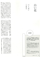 代表作為「永不告別」以及「素食者」,創作許多話題作品的韓國女性作家-韓江在2024年獲得諾貝爾文學獎,成為首位獲得諾貝爾獎的韓國作家以及亞洲女性作家,在這特別要收錄韓江創作的「白い花」。