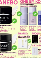 附加商品說明:附KANEBO早晚霜&ONE BY KOSE護膚試用組&SHISEIDO抗皺亮白精華霜&SUQQU粉底液試用包&MAQuillAGE粉底液試用包。提供KANEBO早霜(4g)和晚霜(4g)、ONE BY KOSE護膚試用組(美容液9ml、化妝水14ml、乳液14ml)。雜誌內頁附SHISEIDO抗皺亮白精華霜試用包1個、SUQQU粉底液試用包1個(色號115)、MAQuillAGE粉底液試用包1個。
