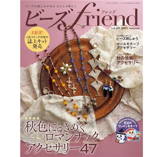 ビーズfriendの人気作家がそれぞれにイメージした秋をビーズステッチの技法を使ってアクセサリーに。