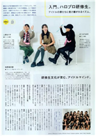 首先專訪木村美沙、大倉忠義、小娟、福嶋麻衣子もふくちゃん…等偶像製作人,從製作的角度討論偶像的理想樣貌。接著請作曲家、作詞家、編舞家分析偶像歌曲的進化現況,並研究坂道系列的設計創意、Hello! Pro研修生文化、舞台造型、特殊用詞…等,還公開18位現役偶像的偶像歌曲播放清單,獻給熱愛偶像文化的各位。