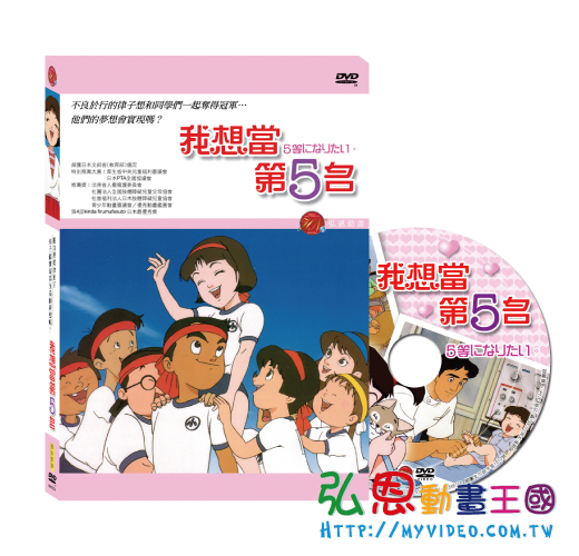 『我想當第五名』的原作(大日本圖書刊),深刻描繪出肢體障礙者律子,一邊獨自忍受異樣眼光,另一方面又努力克服困難的情節,自一九八六年的出版以來,廣受日本當地兒童閱讀以及喜愛,甚至在青少年讀書感想文全國競賽會頻頻選出優秀的作品。這些效應持續擴大,讓本書成為長期暢銷書。閱讀過原作後,又受動畫片特質所感動的孩子與大人們,更能夠跟著故事中的主角──律子,共同進行一場心靈的成長饗宴。 《我想當第五名》故事介紹