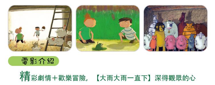 不幸的是,穀倉內只有一種食物-馬鈴薯,對於費迪一家及草食動物們而言還算OK;但肉食動物就只好對其他的小動物們虎視眈眈了。當老船長費迪和他太太被大水沖走後,湯姆和莉莉兩個小朋友就必須開始面對這場人生中最大的挑戰,他們將如何以無比的智慧及勇氣,帶領動物們走出困境呢?