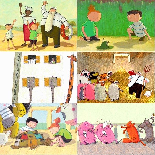 某夏日午後,湯姆和莉莉到池塘邊玩耍,聽見一群青蛙發出了驚人預言:「一場大浩劫即將發生,老天將連續下四十晝夜的大雨,大洪水將淹沒全世界?!」說時遲那時快,大雨嘩啦嘩啦地開始下個不停,老船長費迪連忙將動物們趕到穀倉內避難,大水頓時淹過山丘,穀倉成了避難小舟,這場漫長的漂流旅程於是展開。
