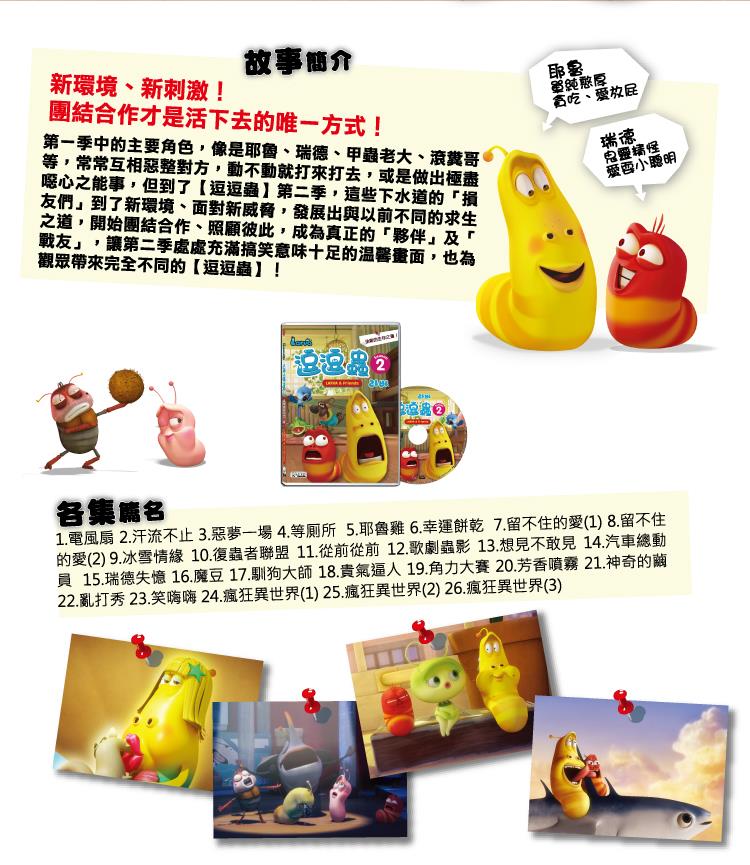【逗逗蟲】是韓國的動畫影集,以低俗喜劇的風格和劇情,讓兩大主角的形象,深植觀眾的心中,第二季延續了第一季的搞笑風格,在無對白的情況下,用背景音或配樂,讓觀眾聚焦於畫面角色的表情及互動,更能感受劇情的精隨。