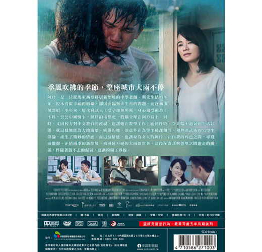 季風吹拂的季節,整座城市大雨不停。阿玲,是一位從馬來西亞移居新加坡的中學老師。與先生結婚多年,原本看似幸福的婚姻,卻因面臨無法生育的問題,而逐漸出現裂痕。多年來,屢次嘗試人工受孕卻無所獲,身心備受煎熬;不料,公公中風倒下,照料的重擔更一股腦全壓在阿玲肩上;同時,又因校方對中文教育的漠視,也讓她在教學工作上感到挫敗。令人喘不過氣的生活狀態,就這樣無能為力地崩壞。疲憊的她,卻意外在為學生補課期間,和熱衷武術的男學生偉倫,產生了微妙的情感。而這份情感,也讓身為女人的阿玲,在自我的角色之間,尋覓而擺盪。正值雨季的新加坡,被漫延不絕的大雨籠罩著,這段在寄託與慾望之間遊走的關係,伴隨著散不去的濕氣,逐漸模糊了界線。
