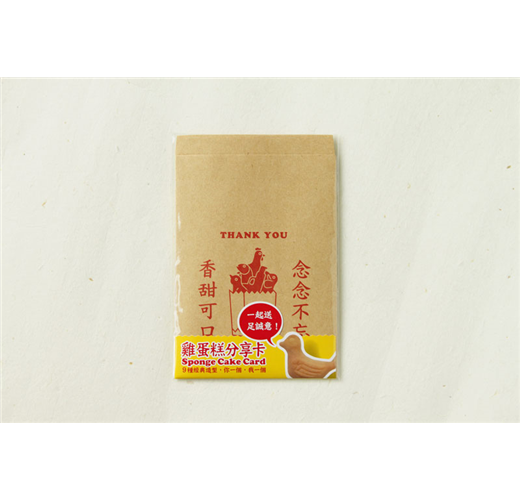 有著可愛外型的雞蛋糕,是臺灣人共同的美好記憶,而展露香甜濃郁友情的最好方式,就是拿出雞蛋糕分享卡,邀請身邊的人挑一個最中意的趣味造型,在卡片上寫下無盡祝福,將友情入袋打包送出去!(含九張不同造型小卡片)