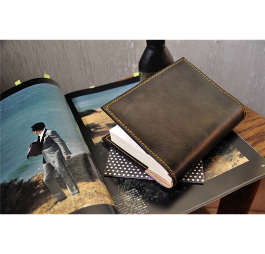皮革款是集日美工與獨立工作室「HIBI」所合作的限量真皮款手帳,裁切、染色、縫製皮革全程手工製作。