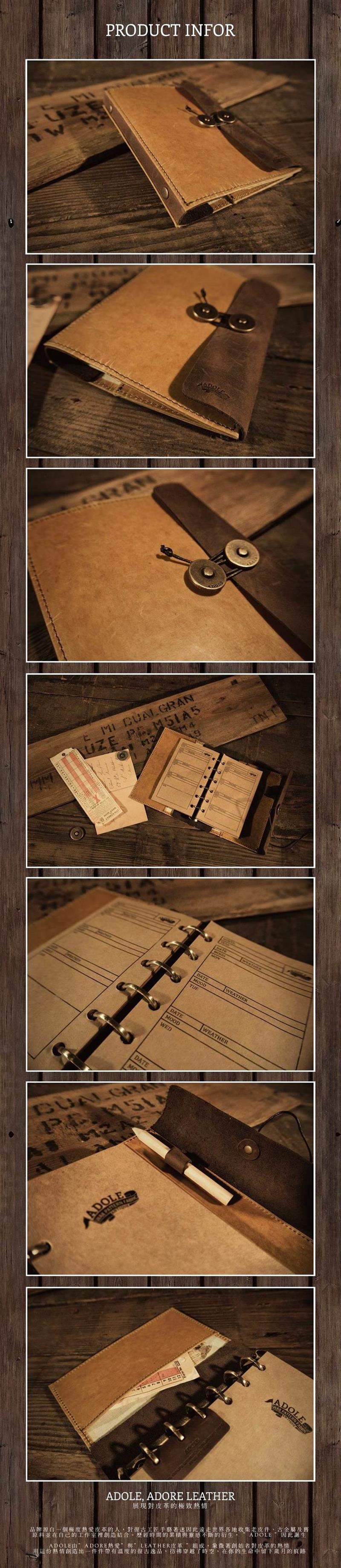 品牌源自一個極度熱愛皮革的人,對復古工匠手藝著迷,遠走世界各地收集老舊的材料、尋找靈感。歷經時間的累積與靈感不斷的衍生,”ADOLE” 因此誕生,由 ”ADORE熱愛” 與 ”LEATHER皮革” 組成,象徵創始者對皮革的熱情,也將在你的生命中留下歲月的痕跡。