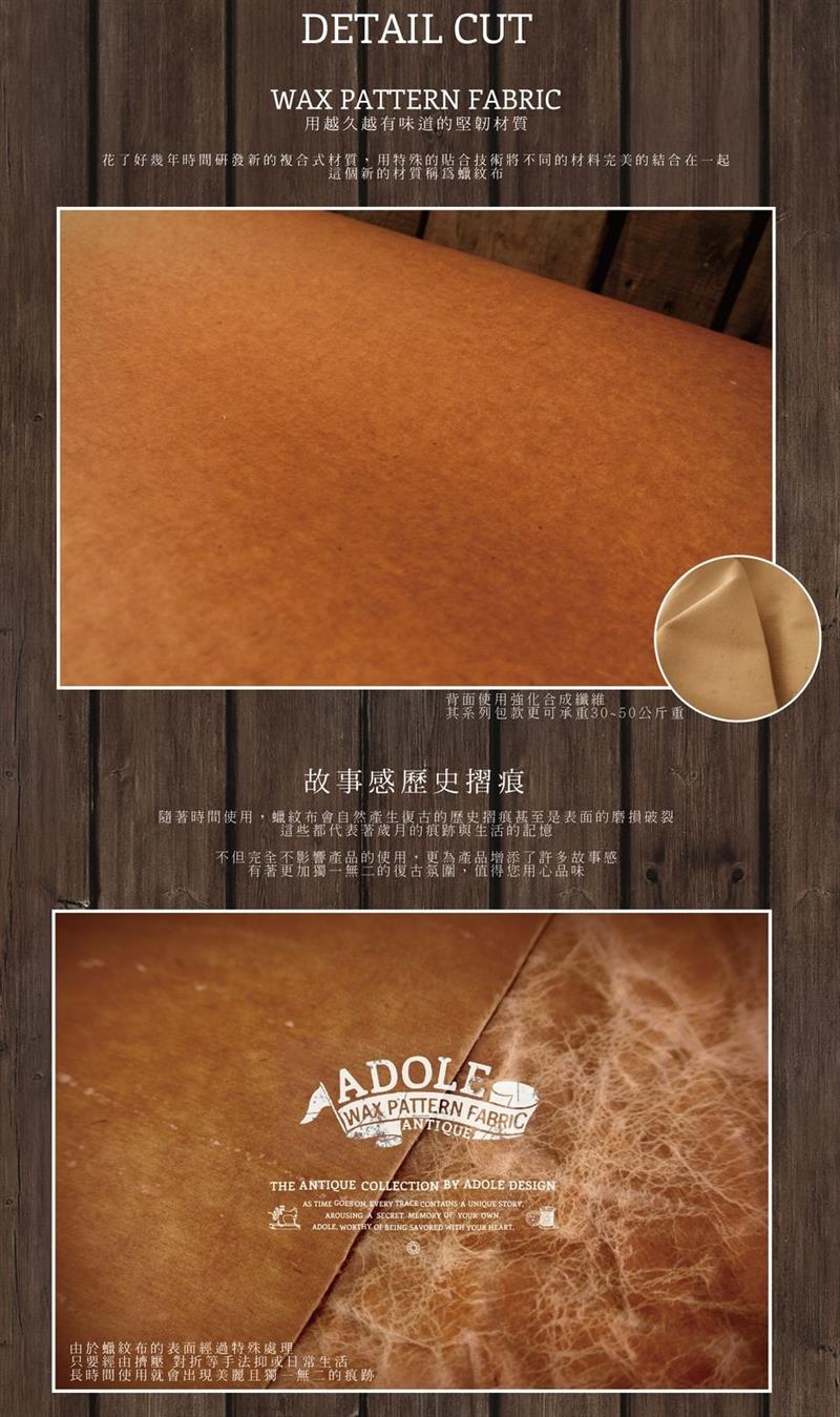 2.蠟紋布為特殊的複合式材質,表面經使用後自然產生的褶痕、磨損或破裂是無法去除的,材質背面有布料纖維支撐,因此並不影響產品,請安心使用。如表面有髒污、灰塵,可以軟綿布擦拭,請勿洗滌或浸泡