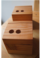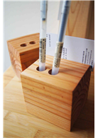 集成才的產生是為了讓木頭使用可以不用砍伐老樹,所以以計劃性造林的木材為來源,在二三十年的時間內長成的木頭即可以使用,也因此樹徑較小,然後再將這些木料經過膠合加壓而成大徑可用之才,此次材料即是集成材廠的切頭角料,再加以設計利用而成的產品,感謝樹木帶給我們的美好感受。