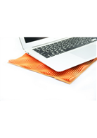採用特殊製程將織品及PU材質做複合材質技術運用,以波浪的語意形成島峰;在異種材料間呈現張力美感;在柔和與剛強間尋求一種衝突的協調。整體波浪造型的起伏與間隙設計,形成空氣對流空間,可以讓筆記型電腦接觸介面解決問題。背面網布具防滑矽膠突點設計,可讓筆記型電腦輕鬆且安心的放在桌上或膝上使用。