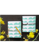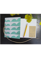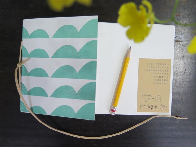 於是設計一款封面是花蓮綠色的山、打開後可以拉長變成兩倍大的筆記本,隨身攜帶時輕巧方便,打開書寫時可以盡情地在很大的紙張上寫寫字、畫畫圖。