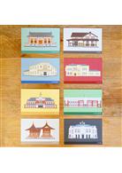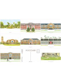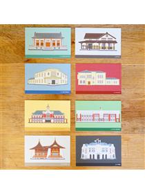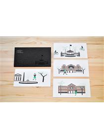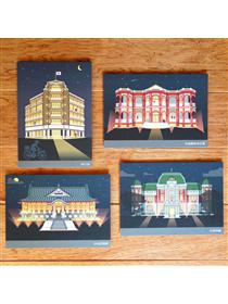 內含:校門堡壘、舊總圖書館、傅園、總圖書館四張明信片,以及設計信封一款。