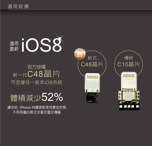 使用Apple MFi官方認證最新C48晶片,