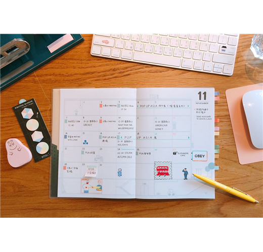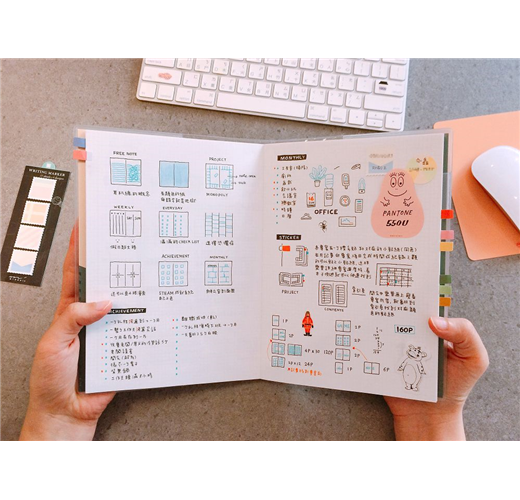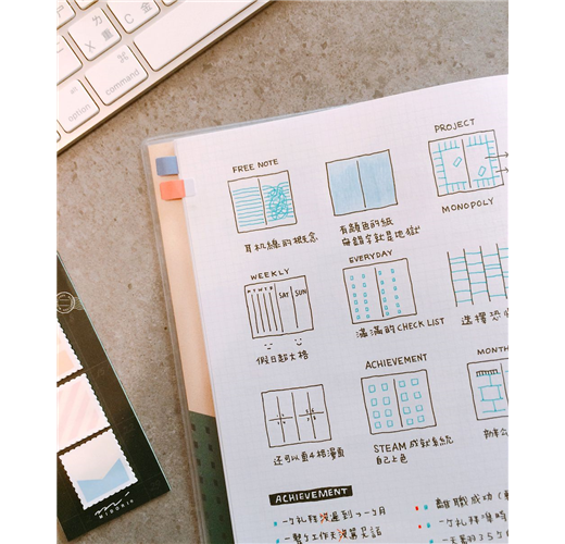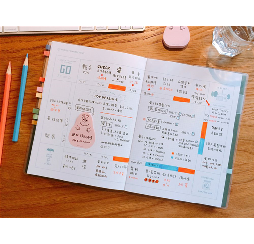 並透過目錄頁與月計畫中的同色貼紙與專案頁面互動