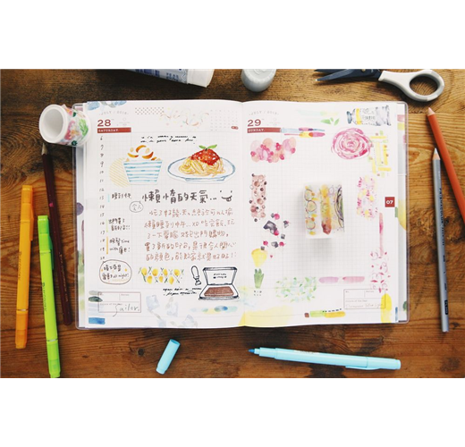 整體的設計是以色彩工坊 Colors Atelier為主題,兩款各具特色的封面搭配高質感的黑色燙金,十分吸睛。內頁365天的日計劃裡,有漢克精心規劃的色彩概念與示範性抽象插畫,天天給你不同的驚喜。 內頁採用日本Hobonichi Techo Planner(ほぼ日手帳)合作紙廠(巴川製紙所)所生產的Tomoe River 68g/m2,紙張輕薄好寫,使用鋼筆書寫不暈不透,是喜歡在手帳上畫水彩的粉絲們,絕對不能錯過的大師級手帳。