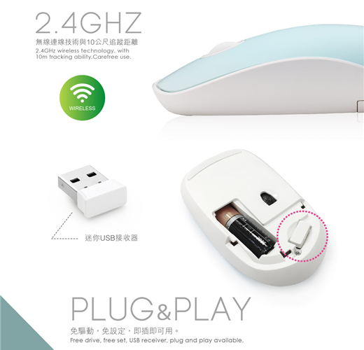 連接模式/距離:2.4GHz無線技術 / 8~10M