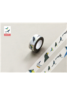 選用台灣八哥、喜鵲、山黃雀、水雉自種鳥類圖案組成紙膠帶。穿插整體與特寫畫面更活潑。