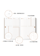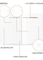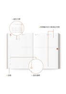 時效日誌一直是 Take a Note 從成立以來的核心設計與起點。從獨家開發的直式二日一頁時間軸+橫式迷你週曆開始,每一年我們都會做許多改良與調整,不論你是重視時間管理的機能派使用者,或是喜歡裝飾剪貼寫日記不需要行程管理的自由派使用者,這本手帳都能夠完全依照你的喜好靈活運用。這本手帳有很多細節與功能,但極盡可能的讓設計的干擾降低,讓你的書寫成為手帳的主角,成為你專屬的道具之一。