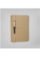 專屬筆套將心愛的筆好好收納,讓記錄生活大小事的筆,隨著筆記本一起上山下海,筆套以細織彈性繩繫在筆記本封面,貼心摺線設計可以將筆套「完全壓平」,書寫時不擔心突起,精選水洗牛皮紙,耐水、耐污,隨使用時間有自然洗舊感,質地溫