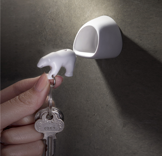 發揮想像力,我家牆面就是一幅美麗的雪景。探出頭的北極熊,構成可愛玩味的場景,讓每次出門都是一場精彩的歷險!簡便的掛式鑰匙圈,在拿取收納時輕鬆容易!也可將各種鑰匙分類,依需求增加。