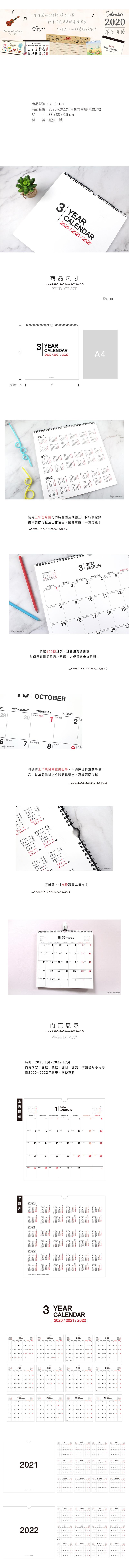 *2020~2022年吊掛式月曆(素面/大)