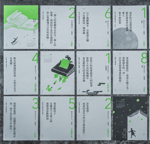 除了「閱讀,越是綠意盎然」的經典「讀曆綠」封面外,針對新人作家的主題