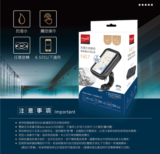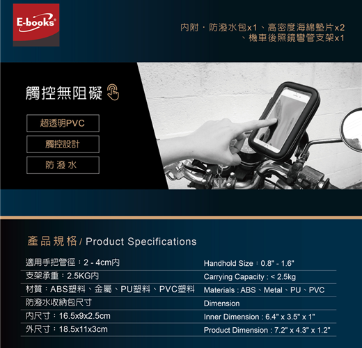 ‧加大型防潑水透明視窗收納包,觸控操作不影響。