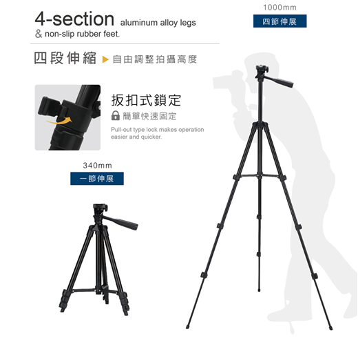 ‧ 扳扣式鎖定,快速固定腳架伸縮。
