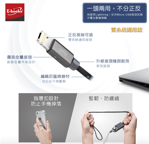 .新一代接頭具雙面插拔設計,一頭兩用快速充電,不分正反面皆可使用。