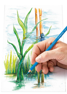 ˙此款色鉛筆的筆芯材質屬於軟性筆芯,繪畫時可搭配水筆或水彩筆一同創作,可在水彩紙上呈現鮮明亮麗的色彩