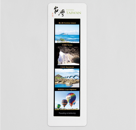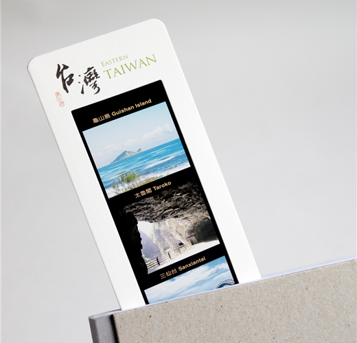 幻燈片書籤裡美麗的台灣風景,既具象卻又帶著透明的虛幻,景象經由不同色溫的光線互動下,展現出不同的意境氛圍;書籤與幻燈片的巧妙結合,在書本頁面裡構成了獨特的台灣滋味。